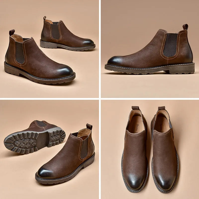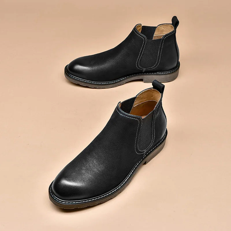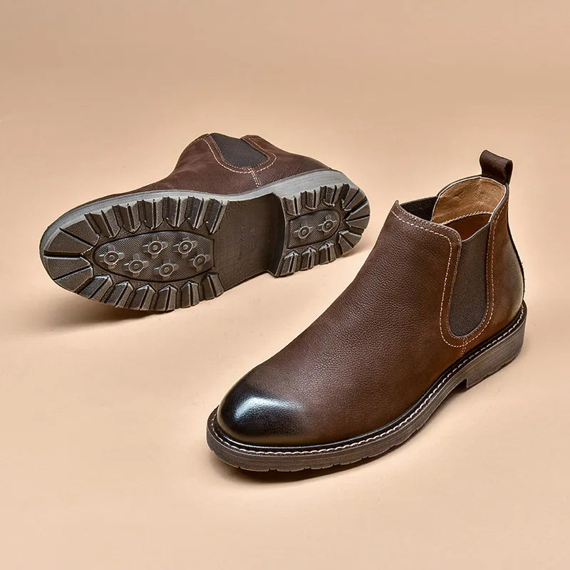 Premium Men’s Chelsea Leather Boots – Handmade Slip-On Ankle Boots with Warm Lining for Winter & Casual Wear