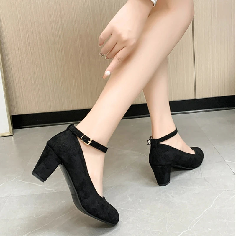 Women’s Sweet Fashion Pumps – Thick High Heels with Ankle Strap, Round Toe Mary Jane Party Shoes